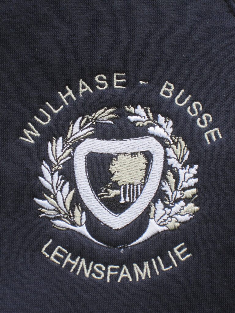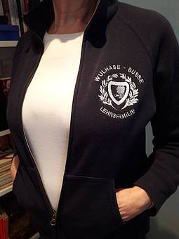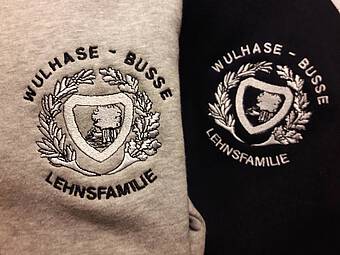 Zu unserem letzten Familientreffen konnten wir allen Anwesenden verschiedene Sweat-Jacken präsentieren, die mit unserem Wappen bestickt wurden.